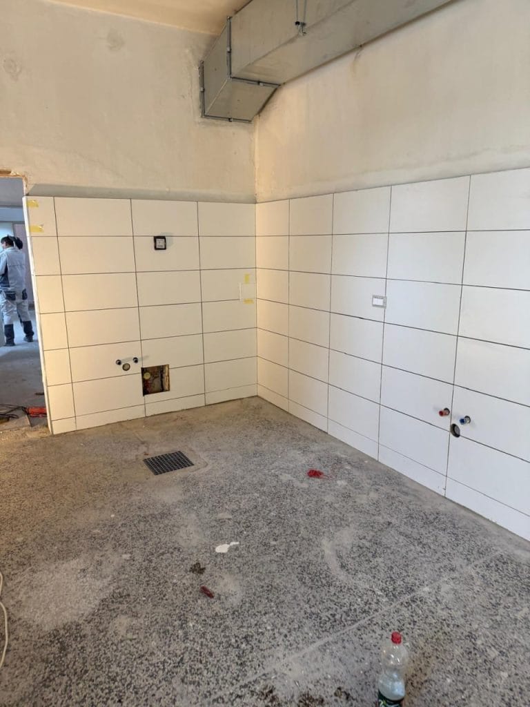 Izvedba keramičnih oblog za čist, odporen in enostavno vzdrževan tehnični prostor.